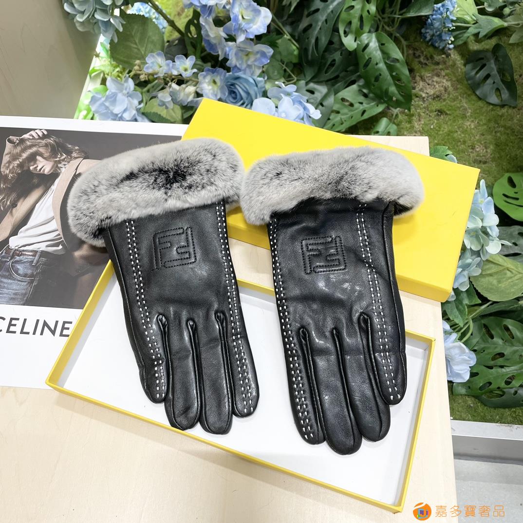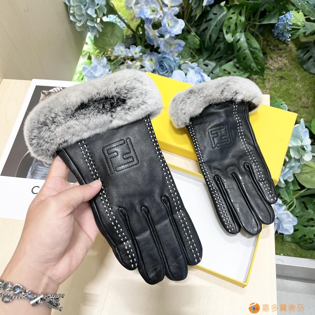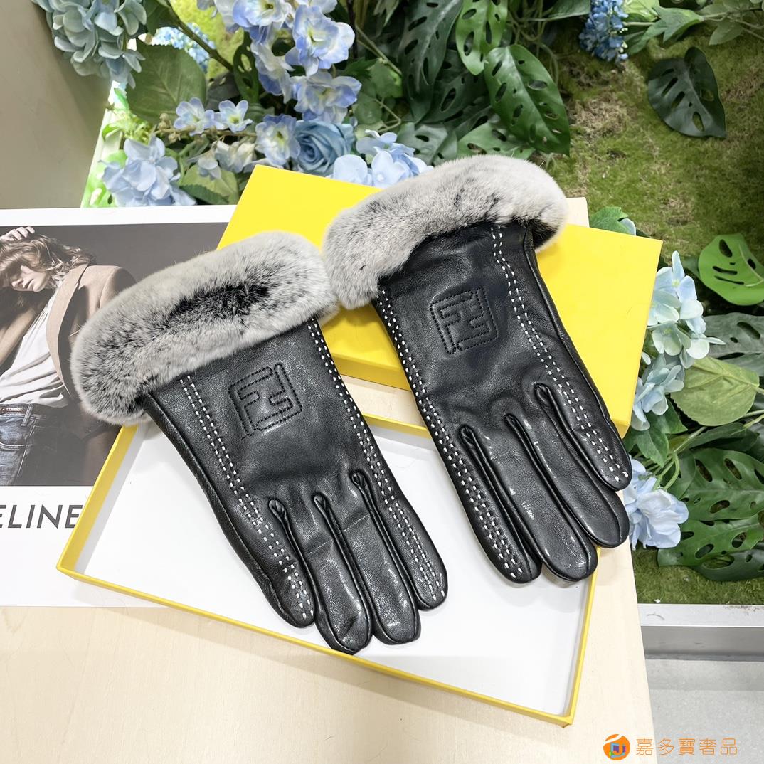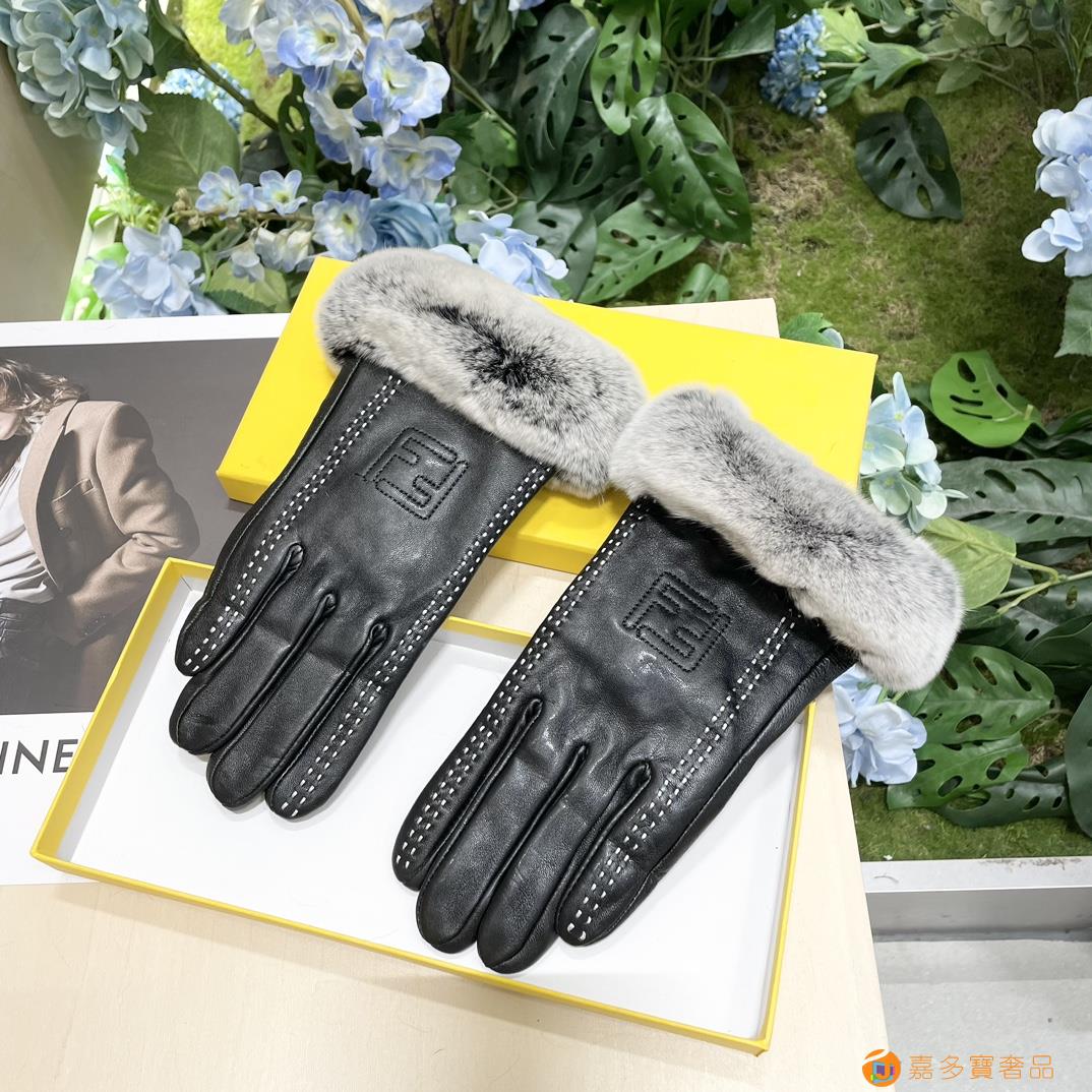 配包装✨女款✅芬迪FENDI新款秋冬懒兔毛CD羊皮刺绣手套?