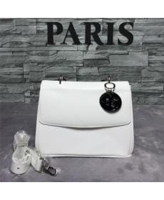 DIOR迪奥/头层羊皮/银扣/女士/三格漆皮/白色/戴妃包/手提包/单肩包