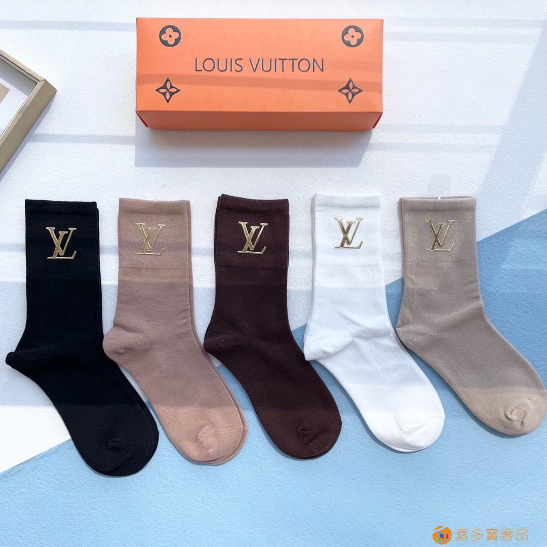 配包装【一盒五双】LV · 路易威登❗️L家新品烫金中筒女款