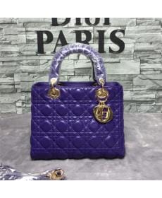 DIOR迪奥/五格羊皮/金扣/女士/紫色/戴妃包/手提包/单肩包