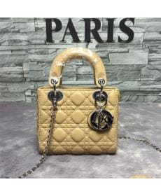 DIOR迪奥/三格羊皮/银扣/女士/浅杏色/戴妃包/手提包/单肩包