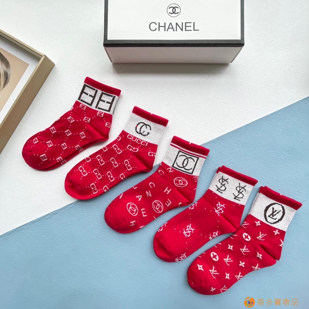 配包装【一盒五双】?LV路易威登 过年红红火火 爆款中筒筒袜