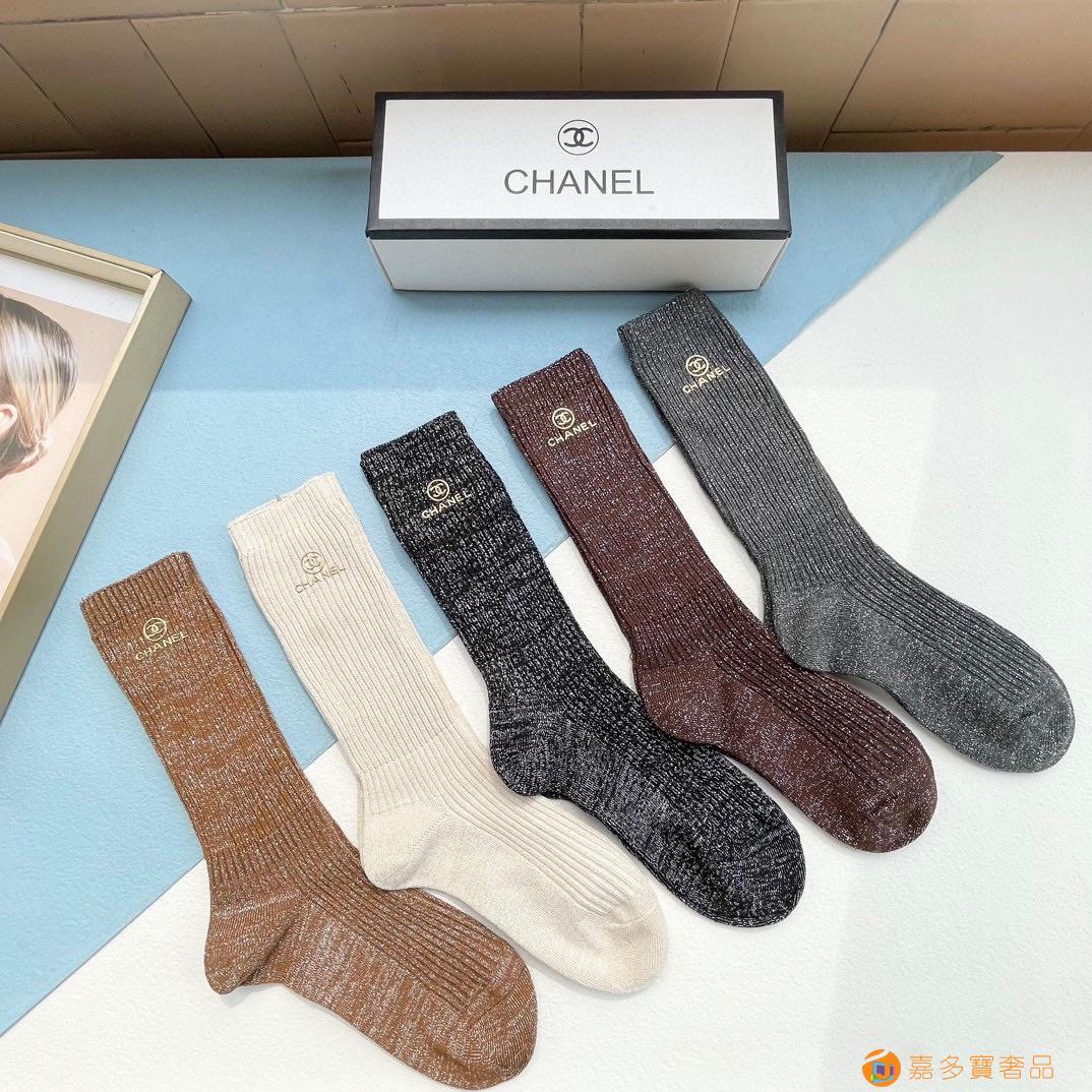 配包装【一盒五双】CHANEL · 香奈儿❗️小香家新品烫金小腿袜女款袜子❗️专柜同步长袜,超级经典的小香家标志百看不厌❗️纯棉材质,双针双路织造,上脚透气柔软舒适,全品相订单,超级nice❗️ins潮火爆小单品,大牌出街,潮人必备?超好搭❗️