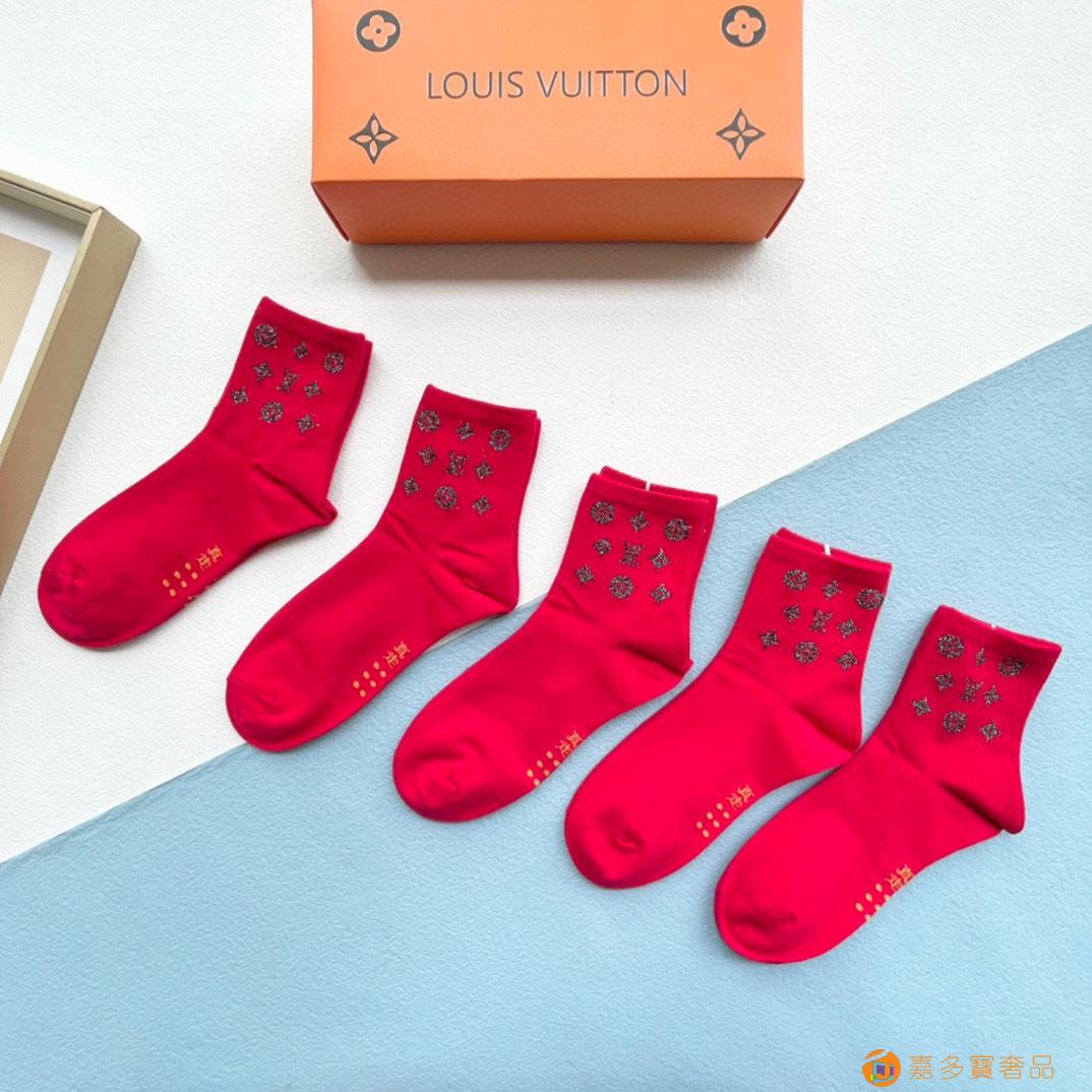 配包装【一盒五双】?LV路易威登 过年红红火火 爆款中筒筒袜