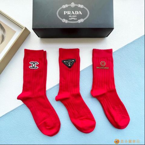 配包装【一盒三双】? 欧美大牌✨红红火火?过年袜?爆款重工饰