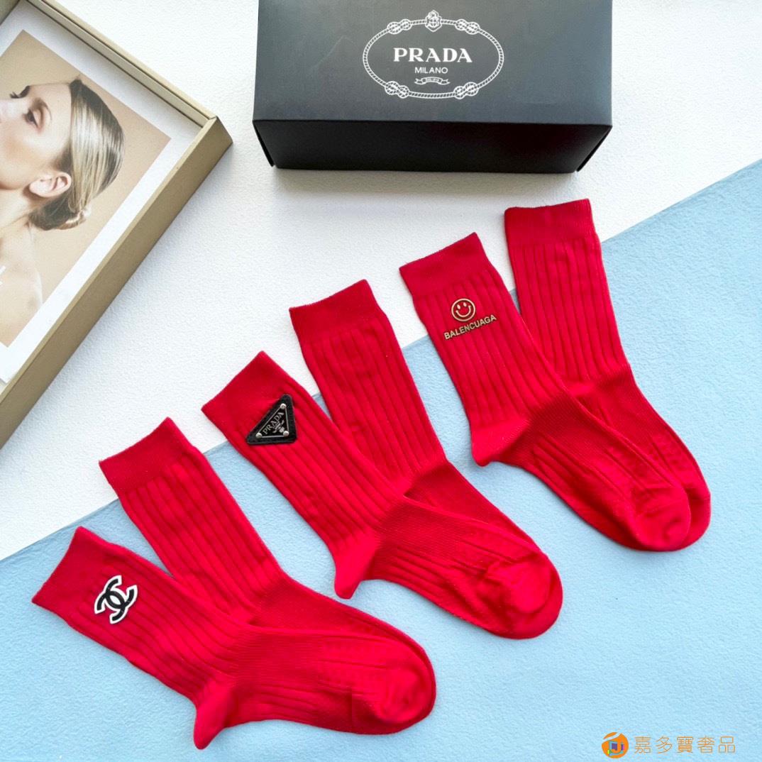 配包装【一盒三双】? 欧美大牌✨红红火火?过年袜?爆款重工饰