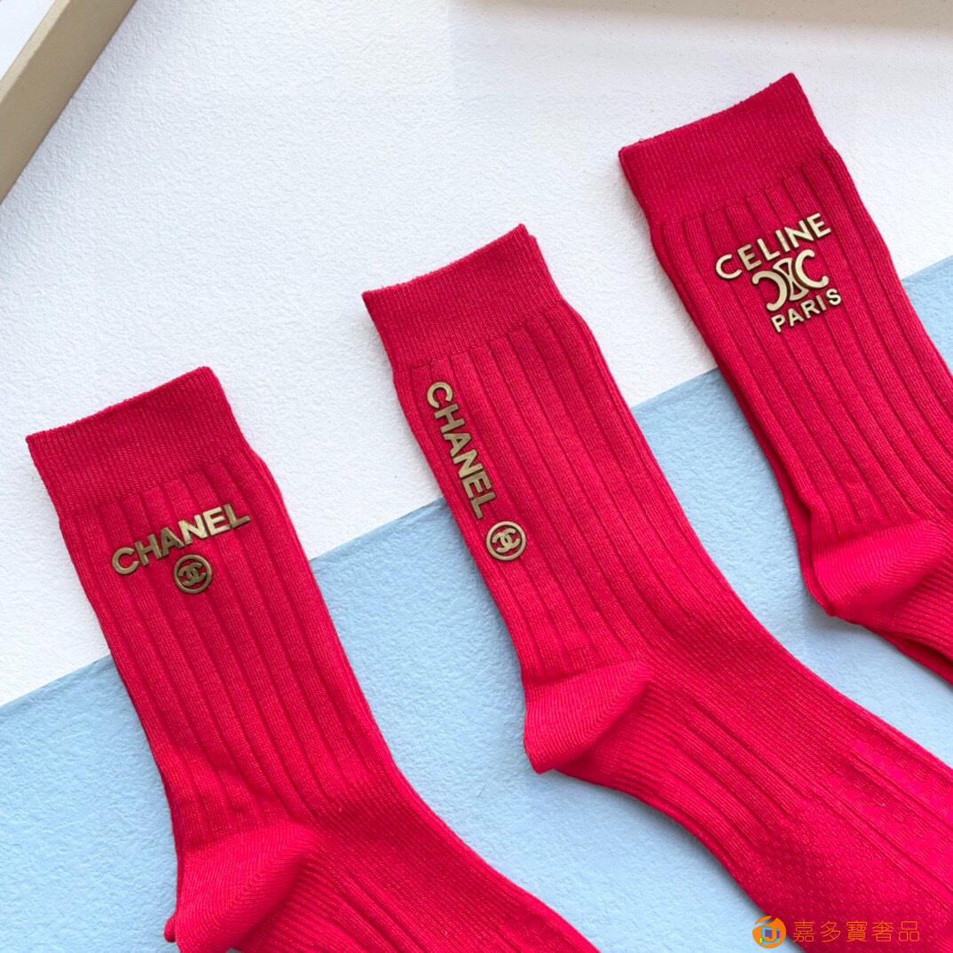 配包装【一盒三双】? 欧美大牌✨红红火火?过年袜?爆款重工饰