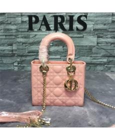 DIOR迪奥/头层羊皮/金扣/女士/三格漆皮/裸粉色/戴妃包/手提包/单肩包