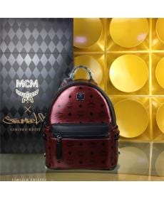 MCM时尚柳钉 PVC配皮 小号侧钉 枣红色 女士双肩背包