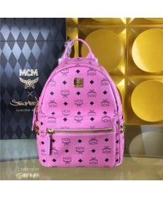 MCM时尚柳钉 PVC配皮 小号侧钉 粉色 女士双肩背包