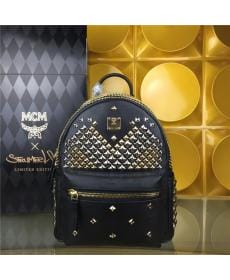 MCM时尚柳钉 PVC配皮 小号 黑色 女士双肩背包