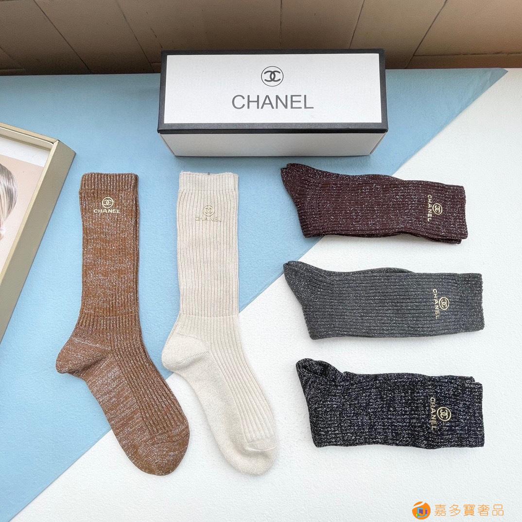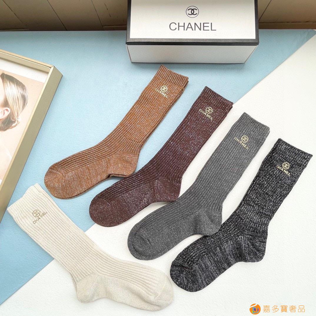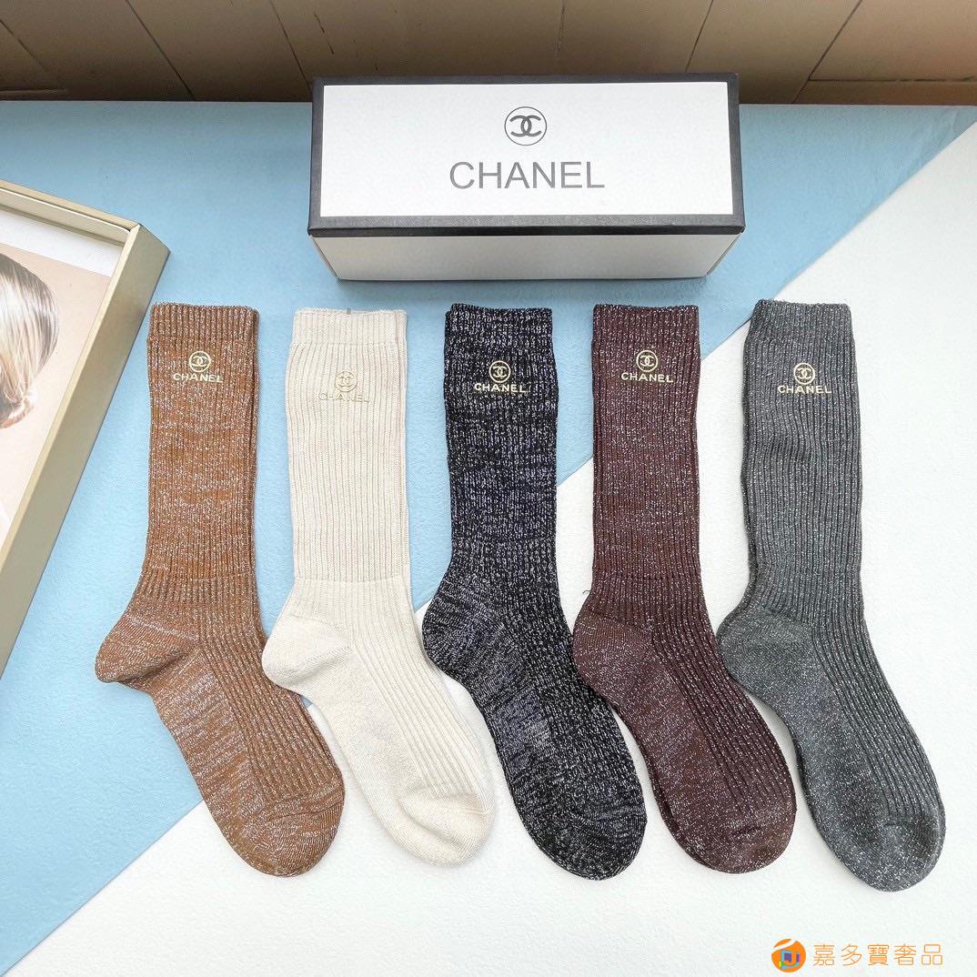 配包装【一盒五双】CHANEL · 香奈儿❗️小香家新品烫金小腿袜女款袜子❗️专柜同步长袜,超级经典的小香家标志百看不厌❗️纯棉材质,双针双路织造,上脚透气柔软舒适,全品相订单,超级nice❗️ins潮火爆小单品,大牌出街,潮人必备?超好搭❗️