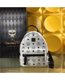 MCM时尚柳钉 PVC配皮 小号 白色 女士双肩背包