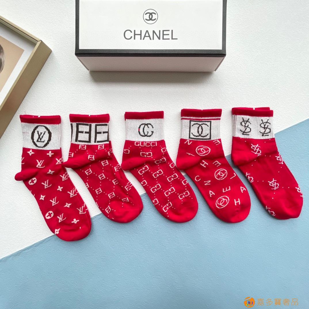 配包装【一盒五双】?LV路易威登 过年红红火火 爆款中筒筒袜