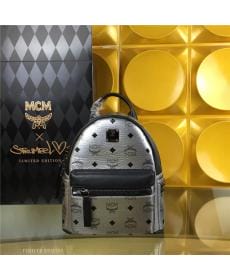MCM时尚柳钉 PVC配皮 侧钉迷你 银色 女士双肩背包