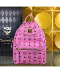 MCM时尚柳钉 PVC配皮 水钻小号 粉色 女士双肩背包