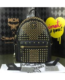 MCM时尚柳钉 PVC配皮 满钻小号 黑皮金钻 女士双肩背包