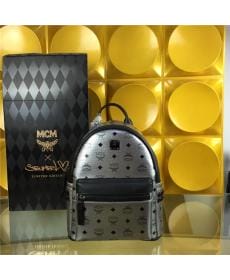 MCM时尚柳钉 PVC配皮 小号侧钉 银色 女士双肩背包
