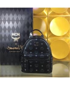 MCM时尚柳钉 PVC配皮 水钻小号 黑色 女士双肩背包