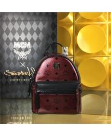 MCM时尚柳钉 PVC配皮 侧钉迷你 枣红色 女士双肩背包