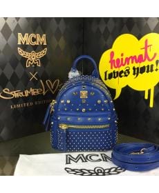 MCM时尚柳钉 宝蓝色 超迷你邓紫棋同款 PVC配皮 女士双肩包