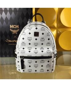 MCM时尚柳钉 PVC配皮 中号 白色 女士双肩背包