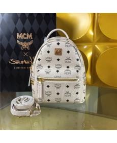 MCM时尚柳钉 PVC配皮 水钻小号 米白色 女士双肩背包