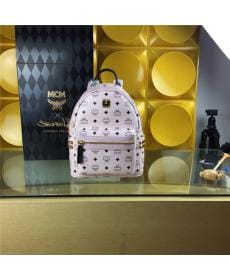 MCM时尚柳钉 PVC配皮 小号侧钉 浅粉色 女士双肩背包