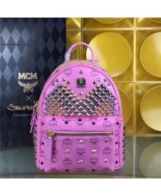 MCM时尚柳钉 PVC配皮 小号 粉色 女士双肩背包