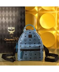 MCM时尚柳钉 PVC配皮 侧钉迷你 天蓝色 女士双肩背包