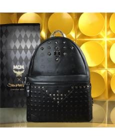 MCM PVC配皮 皮钉大号 黑色 女士双肩背包