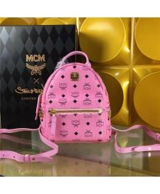 MCM时尚柳钉 PVC配皮 满钻小号 粉色 女士双肩背包