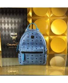 MCM时尚柳钉 PVC配皮 小号侧钉 天蓝色 女士双肩背包