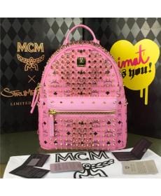 MCM时尚柳钉 PVC配皮 满钻小号 粉色 女士双肩背包