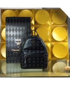 MCM时尚柳钉 PVC配皮 满钻小号 黑色 女士双肩背包
