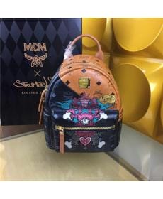 MCM PVC配皮 土黄配黑色 迷你布谷鸟 女士双肩背包