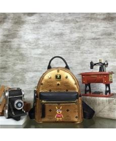 MCM时尚柳钉 中号4钉 PVC配皮 金色 女士兔子双肩背包