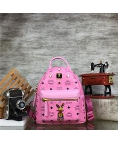 MCM时尚柳钉 小号4钉 PVC配皮 粉色 女士兔子双肩背包