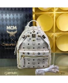 MCM时尚柳钉 PVC配皮 米白色 女士双肩背包/母子包