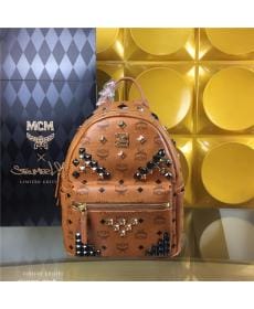 MCM时尚柳钉 小号 土黄色 PVC配皮 女士双肩背包