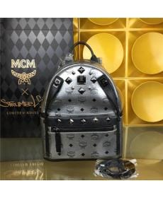 MCM时尚柳钉 小号4钉 PVC配皮 黑色 女士兔子双肩背包