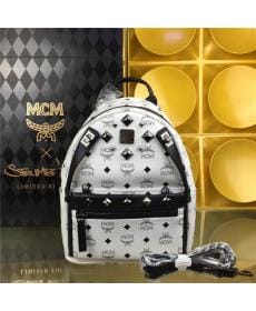 MCM时尚柳钉 小号 PVC配皮 女士白格双肩背包