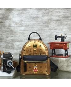 MCM时尚柳钉 迷你4钉 PVC配皮 金色 女士兔子双肩背包