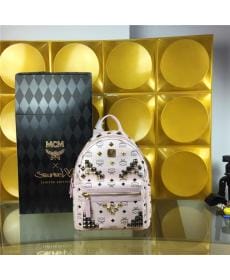 MCM时尚柳钉 小号 浅粉色 PVC配皮 女士双肩背包