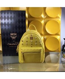 MCM时尚柳钉 PVC配皮 黄色 小号邓紫棋同款 女士双肩背包