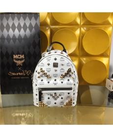MCM时尚柳钉 小号 白色金钉 PVC配皮 女士双肩背包