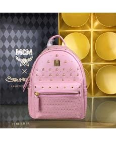 MCM时尚柳钉 粉色 小号4钉 PVC配皮 女士双肩背包