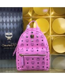 MCM时尚柳钉 PVC配皮 粉色 小号邓紫棋同款 女士双肩背包
