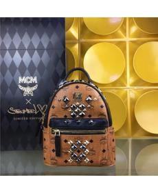 MCM时尚柳钉 PVC配皮 土黄色 女士迷你双肩背包