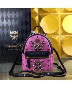MCM时尚柳钉 PVC配皮 粉色 女士迷你双肩背包